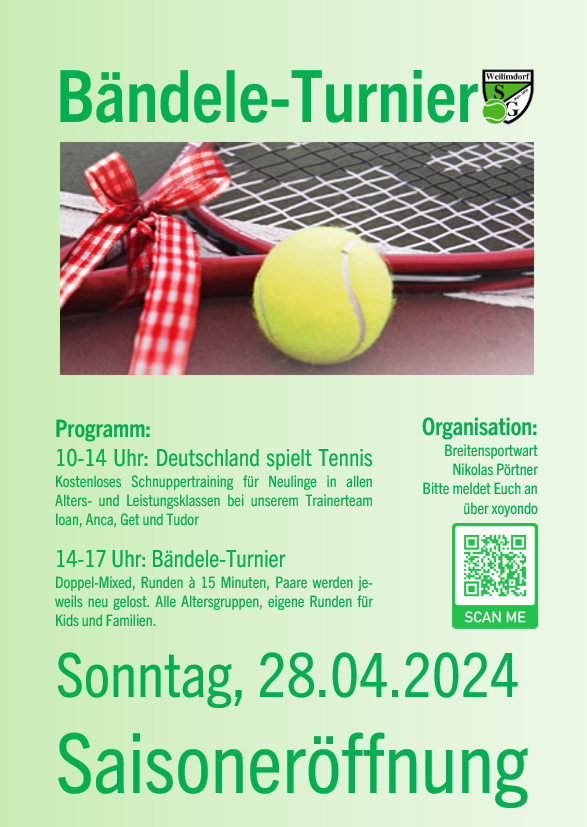 bald ist es wieder soweit und wir laden Euch zur Saisoneröffnung des Tennis-Sommers 2024 ein.